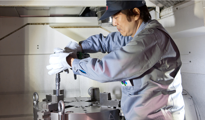 私は最先端の同時5軸多面加工マシニングセンタでの機械加工を担当しています。様々な材質の複雑な形状の部品の加工を任されています。加工法や加工条件の設定を任され責任を感じていますが、それ以上にとてもやりがいを感じています。